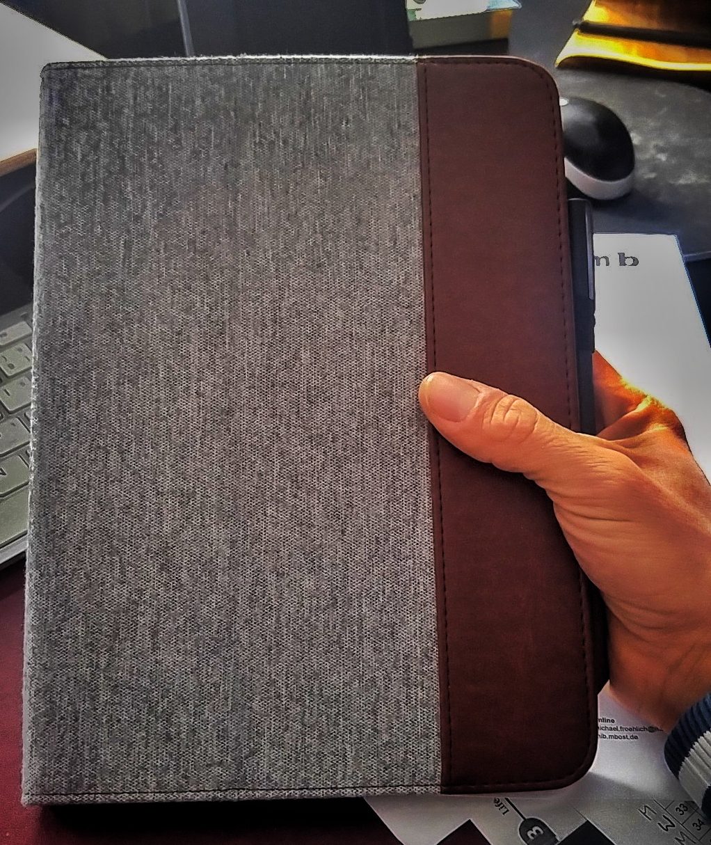 … Allerdings keine von Samsung. Das einzige, was der Hersteller in dieser Hinsicht auf den Markt hat, ist zwar hip, aber unpraktisch. Vor allem für den Unterricht. Wo es beim Note 8.0 noch ein klobiges, aber funktionales Cover gab, setzt man beim Tab S3 ganz klar auf sexiness und präsentiert eine Hülle, die einfach magnetisch am Gerät klebt. Ist von der Haptik her sehr gut, und dieses Klacks, mit dem die Hülle sich mühelos ans Tablet heftet, hat irgendwas wunderbar Befriedigendes an sich. Aber das hilft mir im Unterricht wenig. Weder sind die Kanten des Tablets gut geschützt, noch ist es ausgeschlossen, dass bei einem Sturz die Hülle vom Gerät fliegt und dann die Katastrophe komplett ist. Noch dazu geht mir eine Halterung für den S-Pen ab, der im Gewusel des Alltags ganz schnell abhanden kommt. Deswegen flog das Samsung Accessoire nach kurzer Zeit raus und wurde durch eine Hülle von Fintie ersetzt. Kostet ein Drittel des Preises und schützt sowohl Tablet als auch S-Pen so, wie ich es mir vorstelle. Und sieht nebenbei auch noch gut aus.