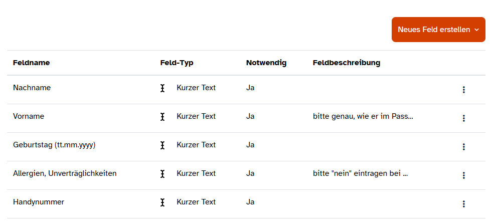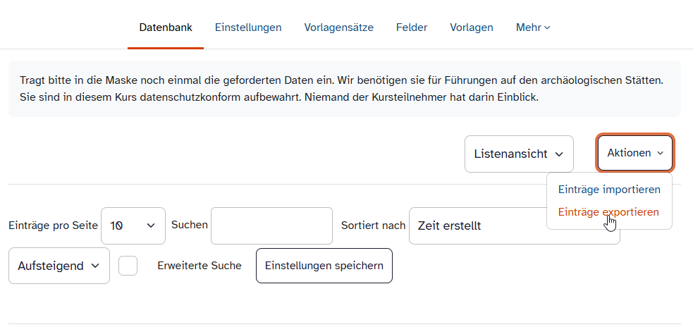 Hier lassen sich die Einträge ganz einfach exportieren. Das hätten wir früher alles händisch abgetippt, Handynummern in einer zusätzlichen Versammlung von den Leuten eintragen lassen… Das alles entfällt. Ebenso wie das erneute Ausdrucken und Austeilen sämtlicher Unterlagen in ein paar Jahren. Dafür werden die alten Teilnehmenden einfach aus dem Kurs ausgeschrieben und die neuen an Bord geholt.