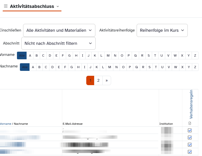 Über diese Option können Verhaltensregeln angeklickt und als angenommen dokumentiert werden. Über Berichte > Aktivitätsabschluss lässt sich für jede einzelne Person nachsehen, wer die Regeln bestätigt hat oder nicht. Nerviges Durchblättern auf der Suche nach nicht erfolgten Bestätigungen oder Unterschriften entfällt dadurch komplett.
